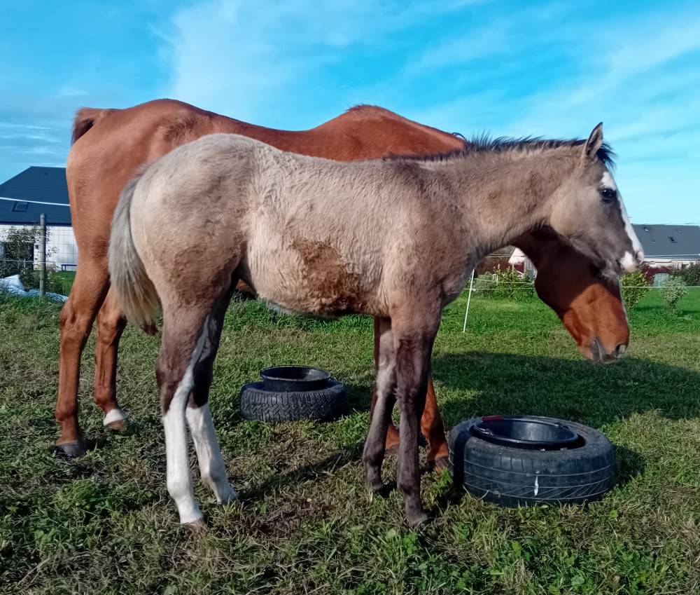 Pouliche d'exception, destinée aux loisirs rando à la maison et à la relève de sa maman comme poulinière.
