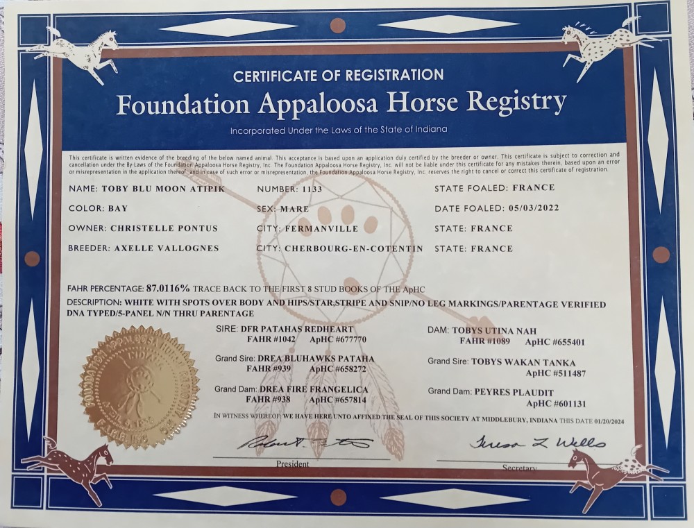- Race : Appaloosa fondation :