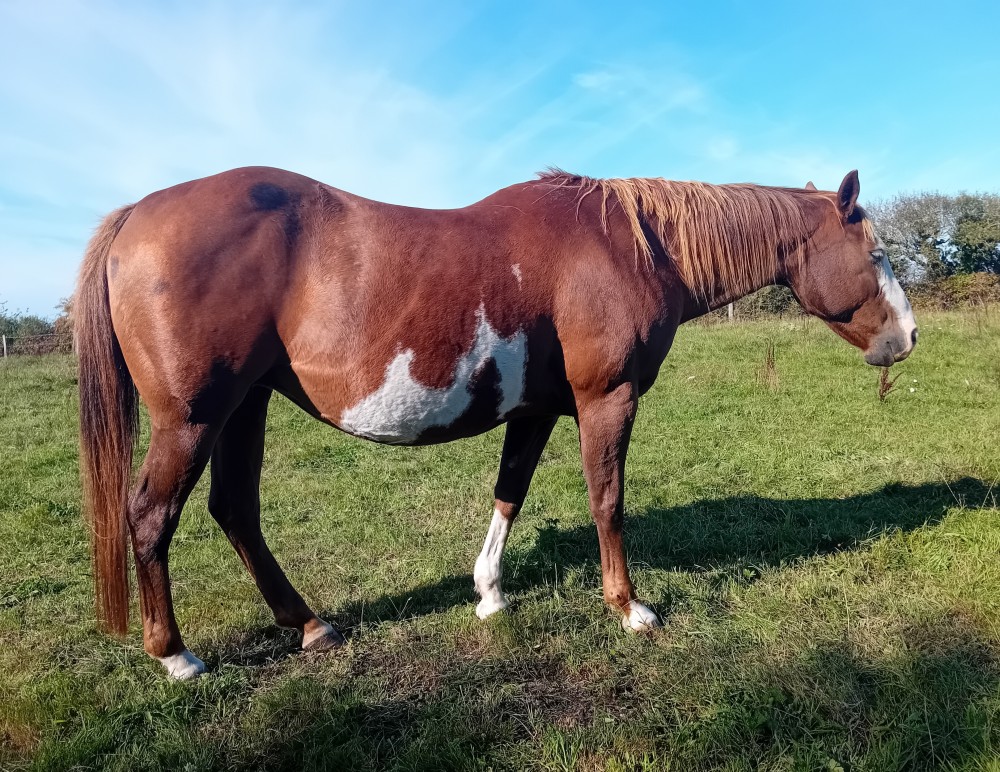 Fanta est une belle petite jument aux pieds montagnards très sûrs ! Rodée au tourisme équestre, seule ou accompagnée, elle découvre maintenant la campagne Normande et la mer. De caractère toujours égal Fanta est très agréable, et ne cherche jamais le conflit dans le troupeau.
